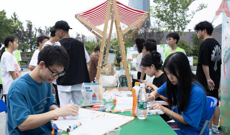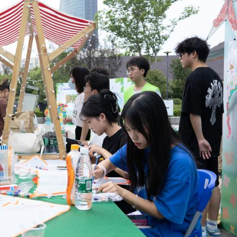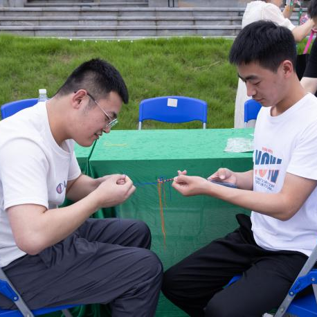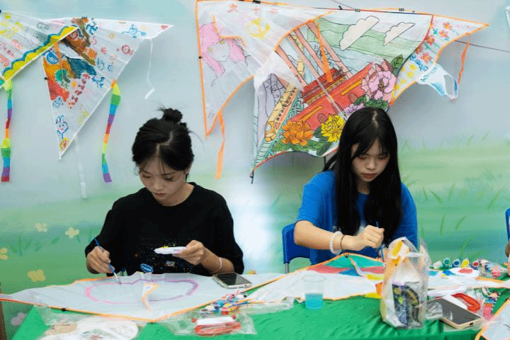 “只凭一线上青天,中有天机合自然。”纸鸢发明于东周春秋时期,距今已有2000多年。信息学院画纸鸢的摊位前围满了大大小小的体验者。同学们将画好的纸鸢拿到操场上放飞,舞动的风筝、奔跑的身影,化成端午最生动的剪影。
