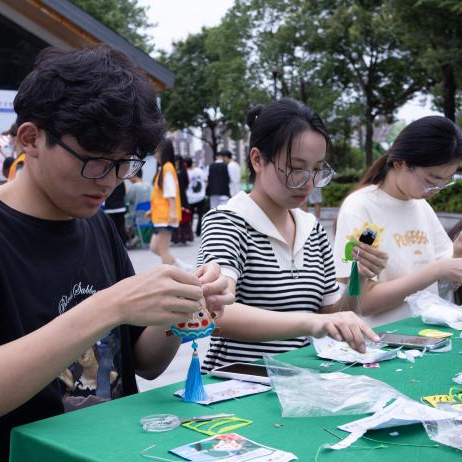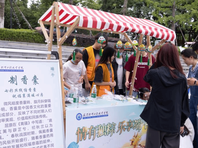 吃粽子、品香茗是端午节的传统风俗。“解棕正思端午,怀沙莫问汨罗”。在包粽子摊位前,生命健康学院的学生正在指导师生们动手包粽子。虽然大多数都是“生手”,大家都学得很认真,表示能亲手体会这种传统美食的制作本身就是一种极大的幸福,拿着自己亲手包的粽子,这个节日过得与众不同。