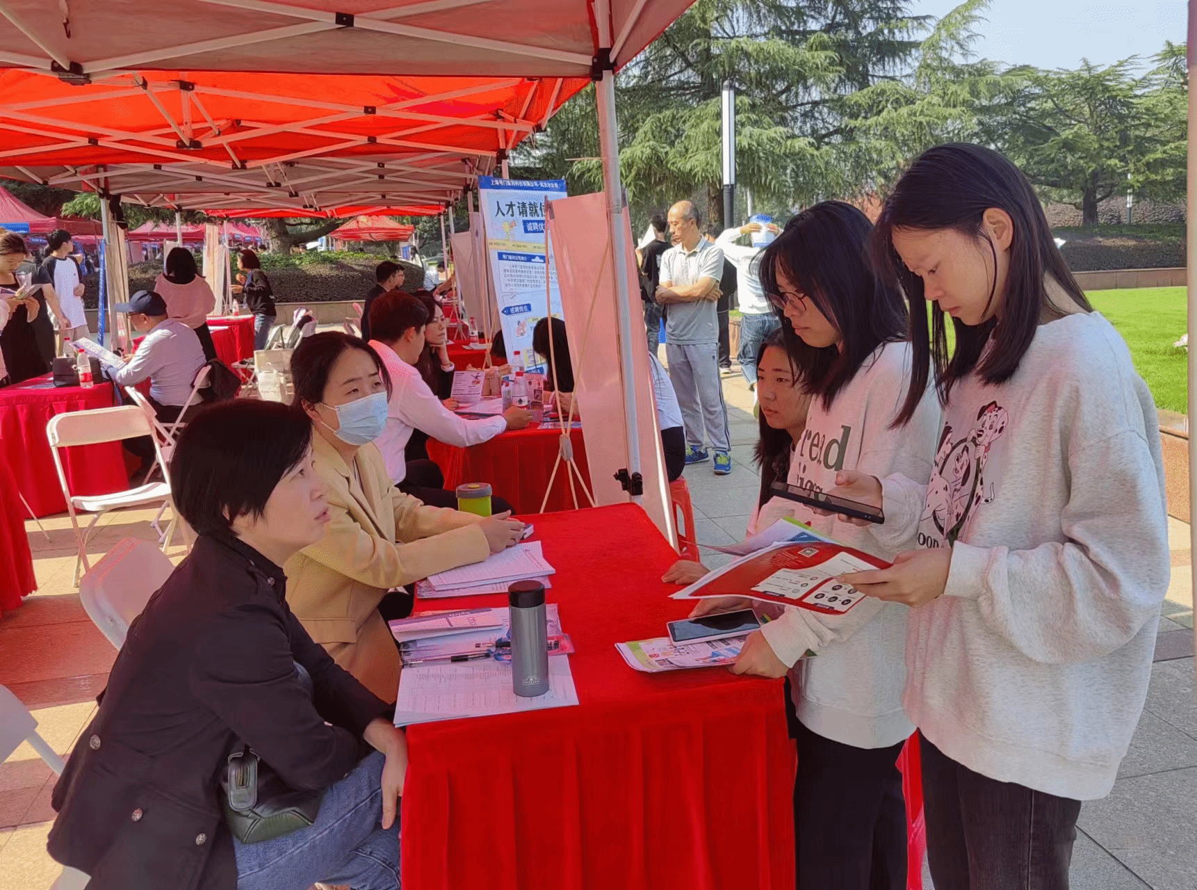 各学院领导和毕业班辅导员也来到现场与企业面对面交流,积极为毕业生做求职推荐。许多企业现场收了不少简历,当即预约了下午的宣讲会,对学生进行了首轮面试。
