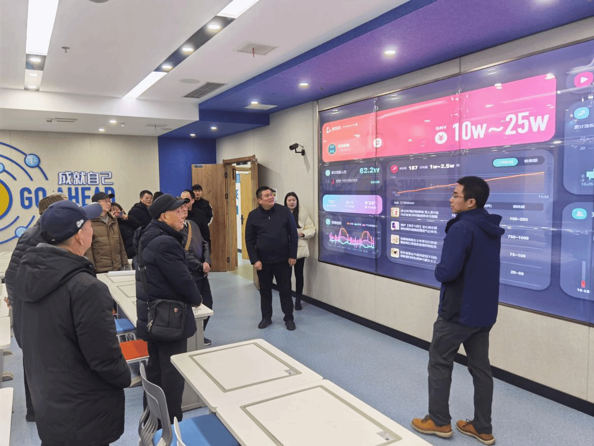 通报会后,老领导们在副校长王中林的陪同下先后参观了社交电商产业学院和烽火产业学院,观看了国家级智能商业新零售协同创新中心的网络直播演示和教学成果展。