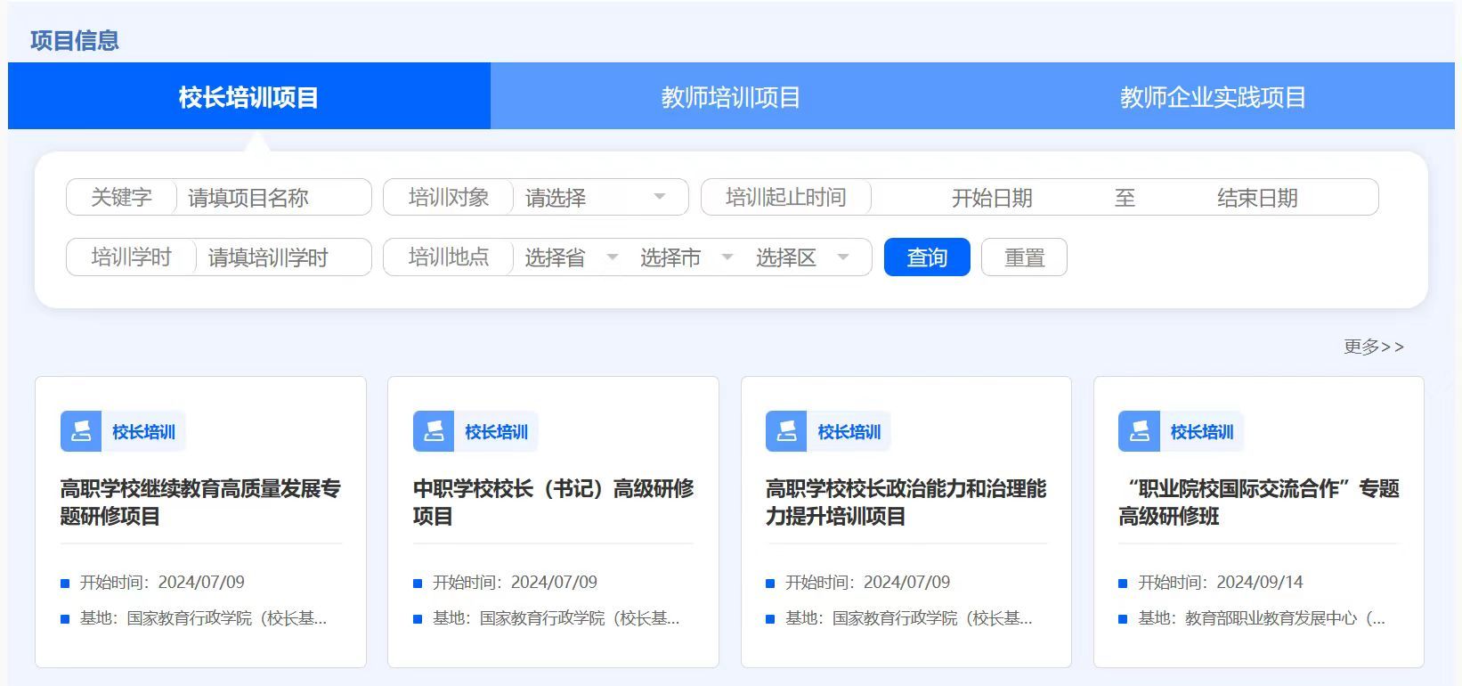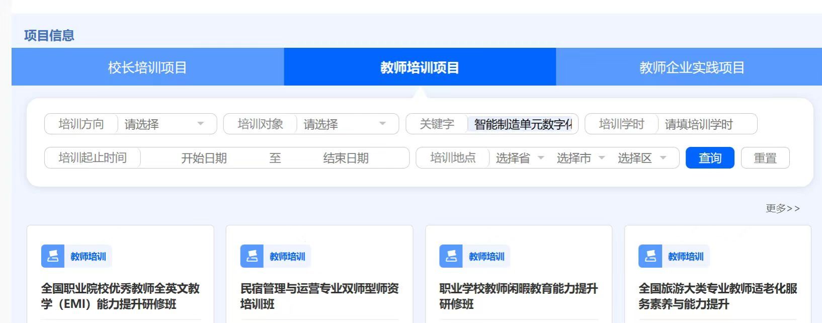 第三步:项目信息栏选择教师培训项目,可以根据培训项目名称直接搜索,查看培训项目详情