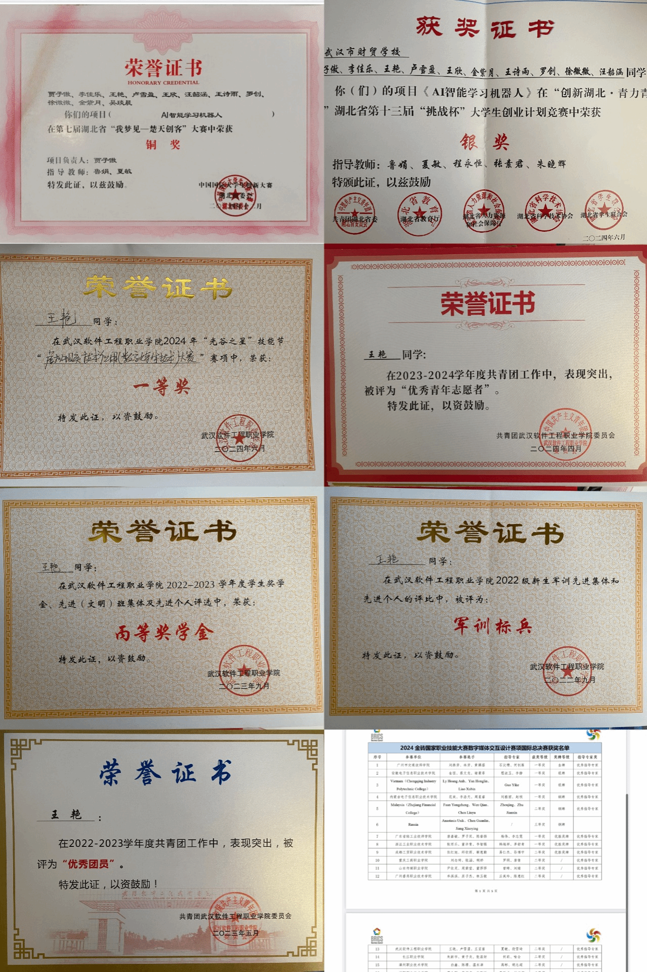 2024年国家奖学金、校奖学金等荣誉;
