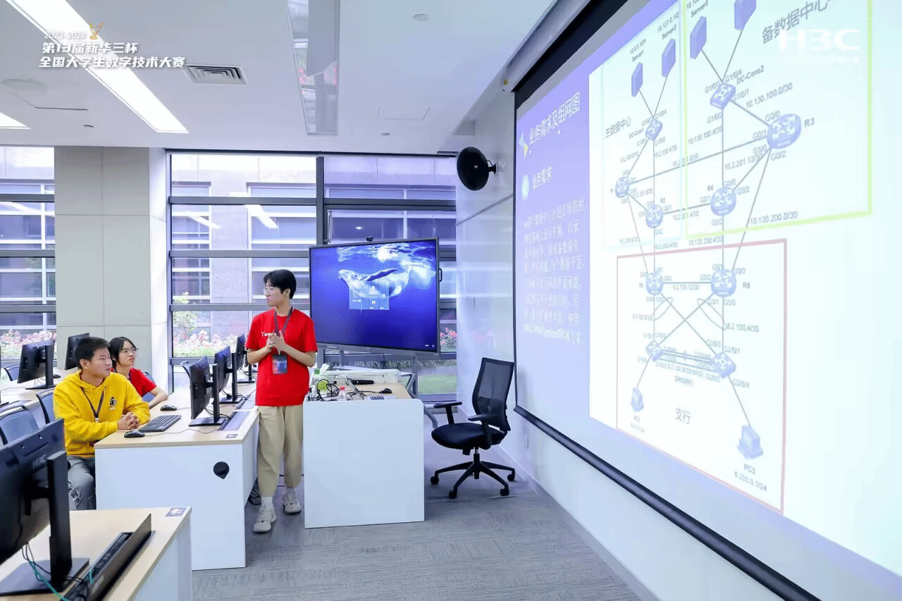 陈家明深知“几分耕耘,几分收获”的道理,他一丝不苟学习新技术,在各类职业技能竞赛中,灵活应用所学的知识,在赛场上大放异彩。在第13届新华三数字技术大赛中,陈家明作为团队的队长,代表团队进行项目答辩。比赛中面对来自全国院校的精英选手,他毫不露怯,面对来自企业专家的提问,他灵活作答,根据自己深厚的技术功底以及灵活应变的能力,赢得了评委的肯定。他所在的团队在新华三数字技术大赛中脱颖而出,斩获佳绩。