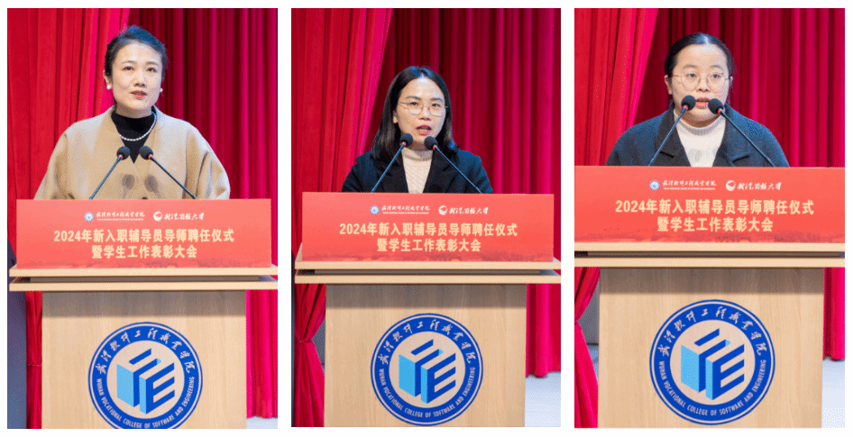 优秀中职班主任代表庞宁、兼职辅导员代表王东丽、优秀辅导员代表唐圆分别进行交流发言。
