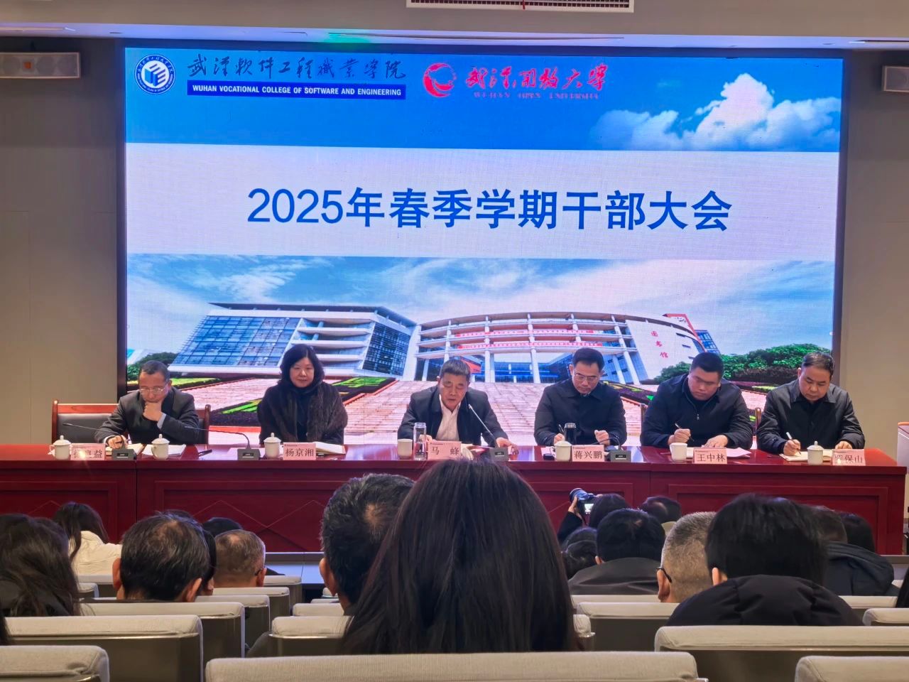 2月17日上午,2025年春季学期干部大会在学术楼3号报告厅召开。校党委书记马蜂、校长蒋兴鹏、副校长杨京湘、副校长王中林、纪委书记徐良益、副校长罗保山出席会议,全校副处及以上干部参加会议。大会由马蜂主持。