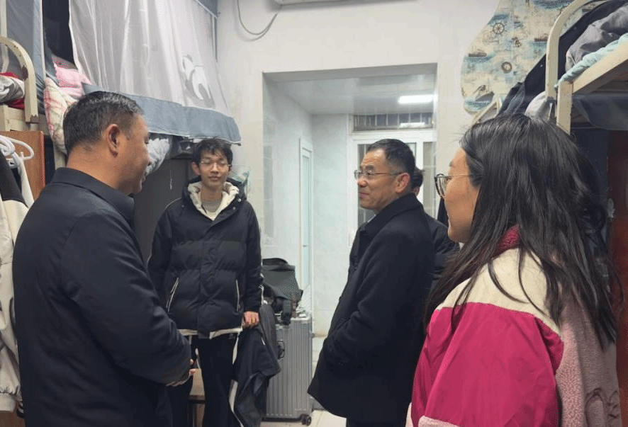 在学生宿舍,校领导详细询问同学们的返校适应情况,鼓励同学们迅速调整状态,以崭新的面貌迎接新学期的学习生活。同时,老师们一行还仔细检查寝室卫生、用电安全、网络设施等,反复叮嘱同学们强化安全意识,注意防火防盗,保持寝室整洁,营造良好环境。