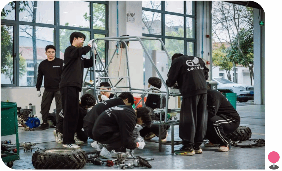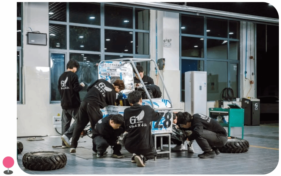 经过历届学生的不断积淀与磨砺,光谷之翼车队在赛车静态赛和动态赛的准备中逐渐展现出更强的实力。2025赛季,光谷之翼车队对新车的设计提出了“更轻、更快、更安全”的要求。在年初设计阶段,电动巴哈设计采用双电机四驱平台Flash-24,除了动力升级,操控性和可靠性也能得到进一步提升。另外,新车首次采用四轮转向功能,显著减小了转弯半径。通过模块化设计,优化了动力传动系统,搭载两台5kW永磁同步电机,并通过能量回收技术,显著增强了加速性能和耐久赛赛场的续航能力。同时,赛车电池采用了智能温控系统,让动力电池的管理更加智能化,提高赛车的安全性。
