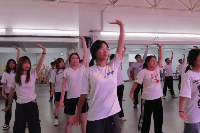 体育学院金灵子老师、王熙老师分别带来啦啦操和有氧操教学。随着动感音乐响起,同学们活力四射,跳跃、旋转、击掌……现场瞬间被热情点燃。同学们挥洒汗水,动作从生涩到流畅,逐渐形成整齐划一的阵型。