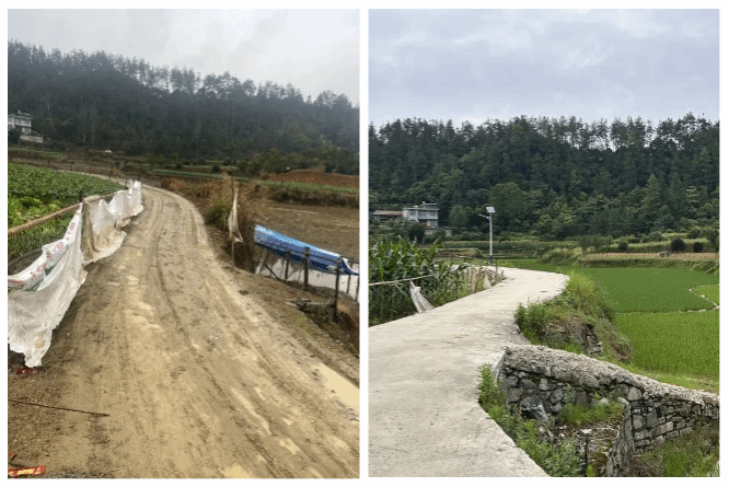 ▲中城村组级路修建前后对比图