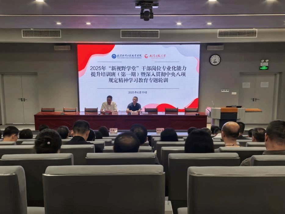 (通讯员 陆洋)为深入贯彻中央八项规定精神,落实省、市“干部素质提升年”的部署要求,进一步深化作风建设,提升干部的专业化水平,我校于6月19日在光谷东校区学术楼3号报告厅成功举办了2025年“新视野学堂”干部岗位专业化能力提升培训班(第一期)暨深入贯彻中央八项规定精神学习教育专题轮训。