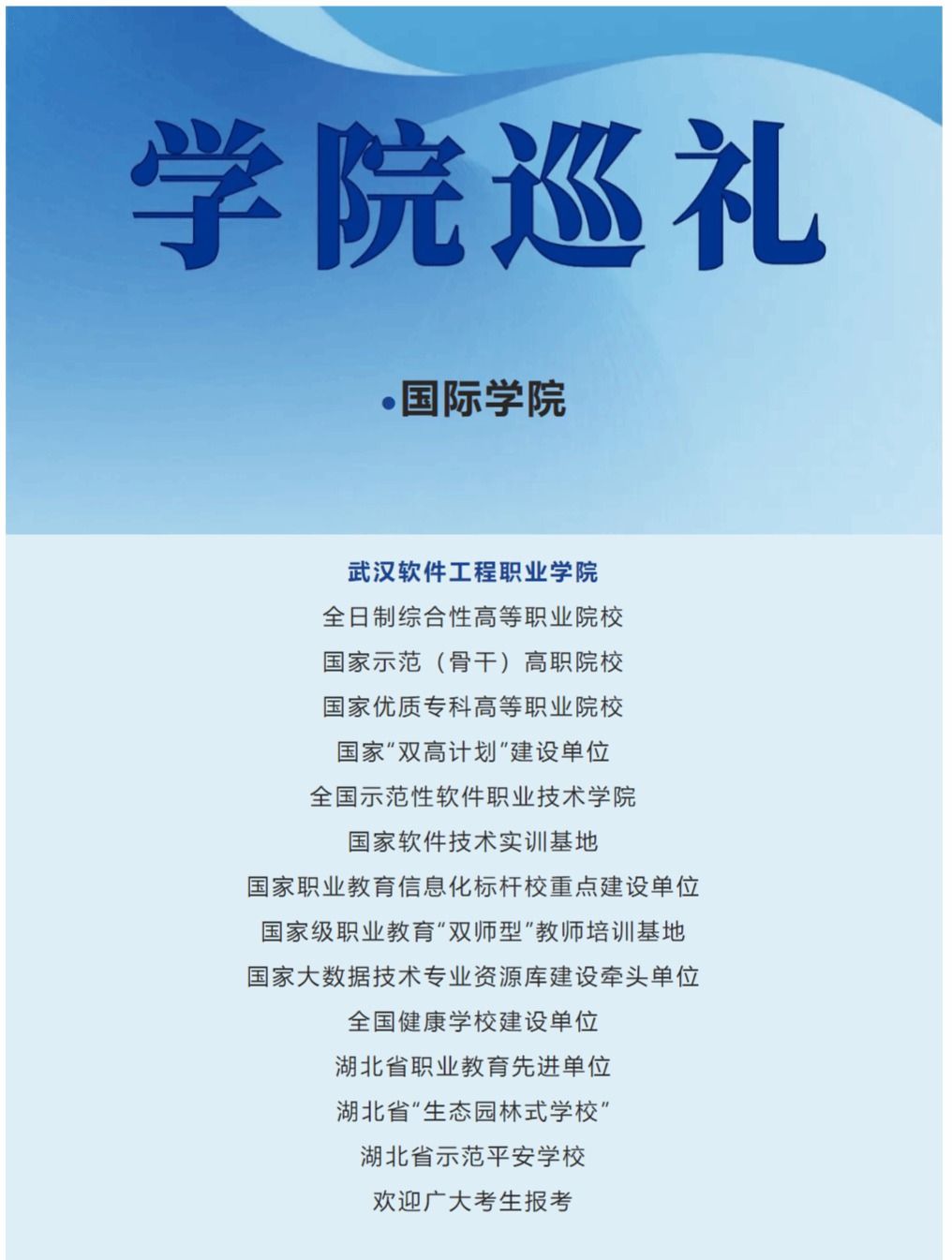 武汉软件工程职业学院国际学院属学校二级管理机构,承担国际与港澳台教育交流合作、校企合作管理两大核心职能。