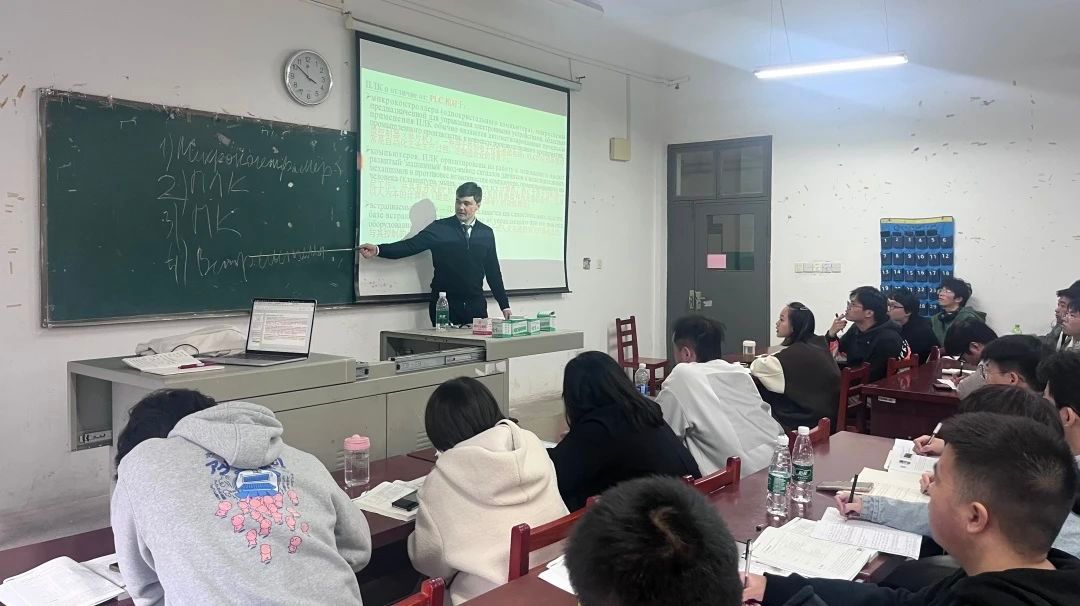 弗拉基米尔国立大学机械制造与汽车运输学院副教授亚历山大.巴库托夫来我校为中俄班机电一体化专业学生授课