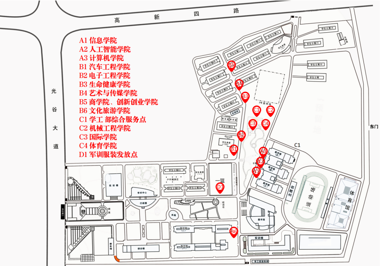 2025年迎新各学院报到点、“绿色通道”服务点及军训服装发放点分布图