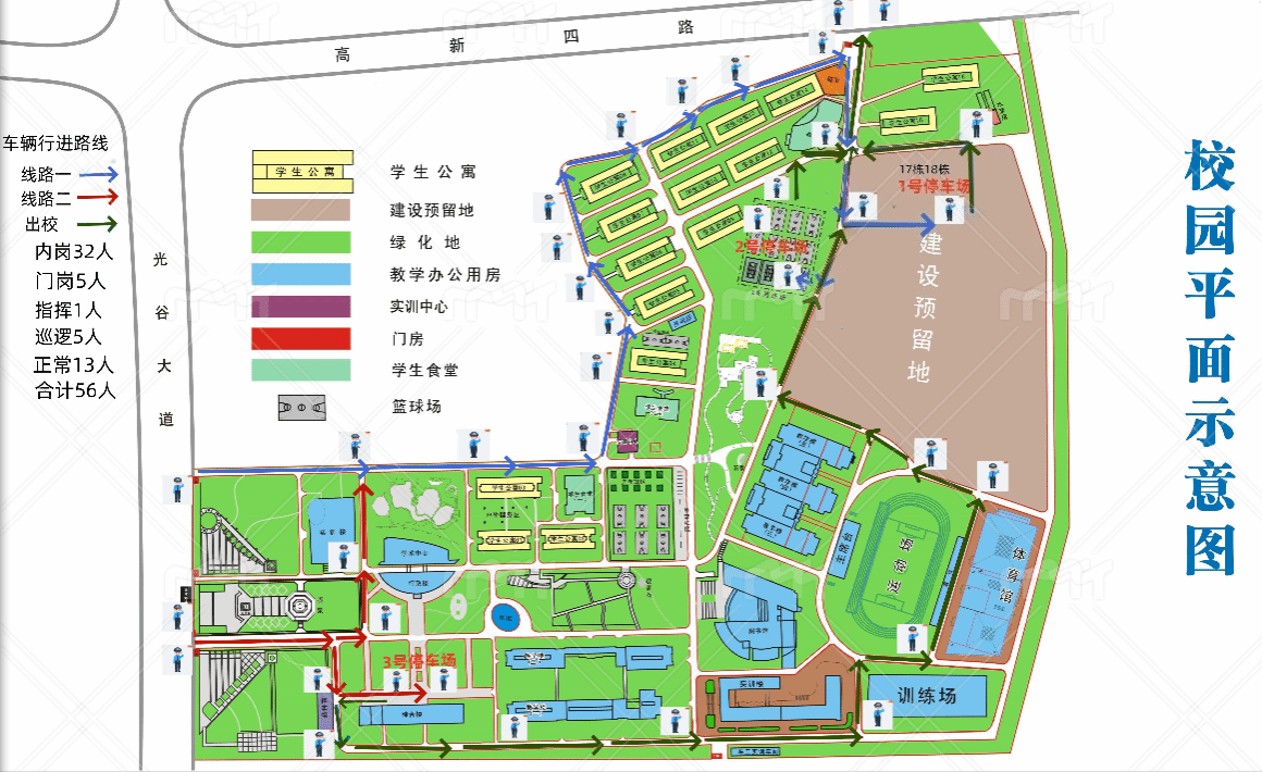 新生以《录取通知书》作为身份识别依据,向门禁执勤人员出示后,行人从学校西步行门进校,车辆从西门、西侧门进校后沿学校外围从北门离校。