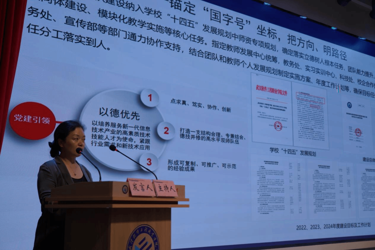 ▲国家级职业教育教师教学创新团队代表开放大学综合管理处罗炜老师发言