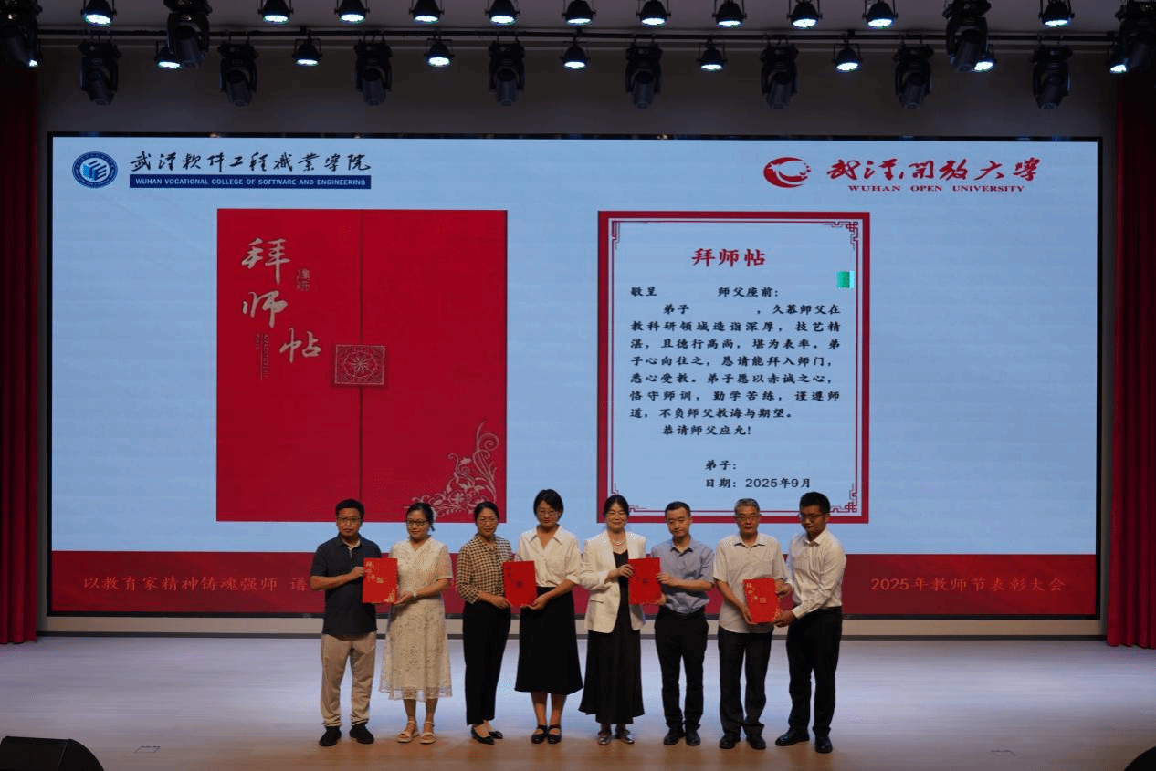 大会举行“新教师——导师”拜师仪式。学校为新入职教师一对一配备指导教师,帮助其走好学校职业生涯第一步。
