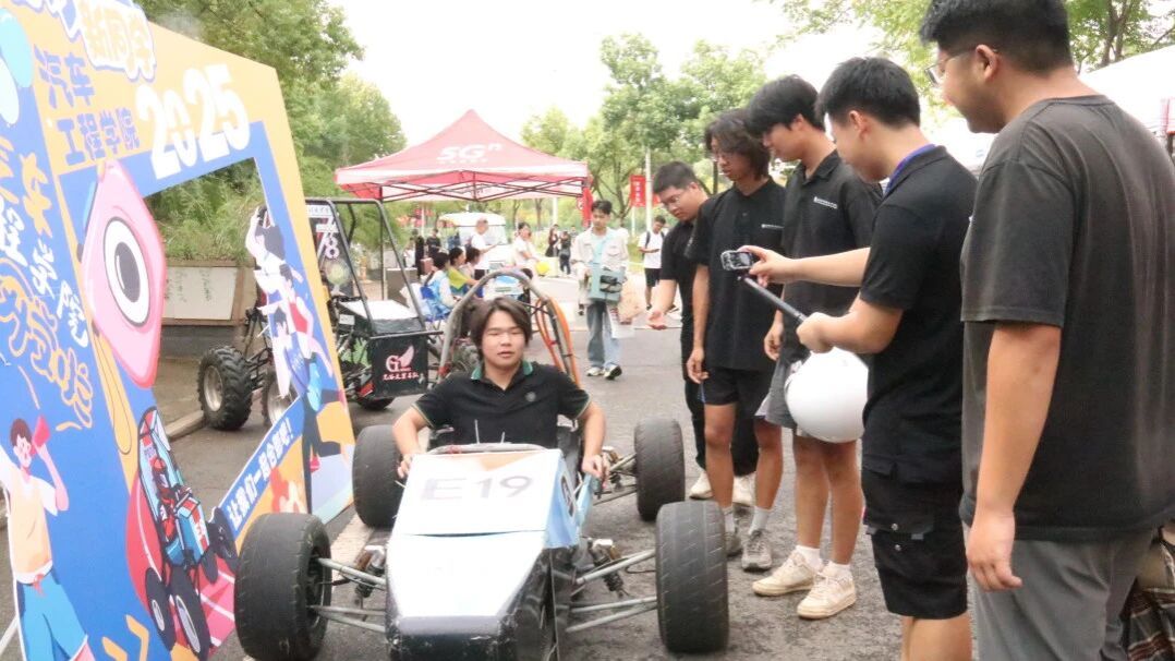 在汽车工程学院,新生一报到就立刻体验赛车。