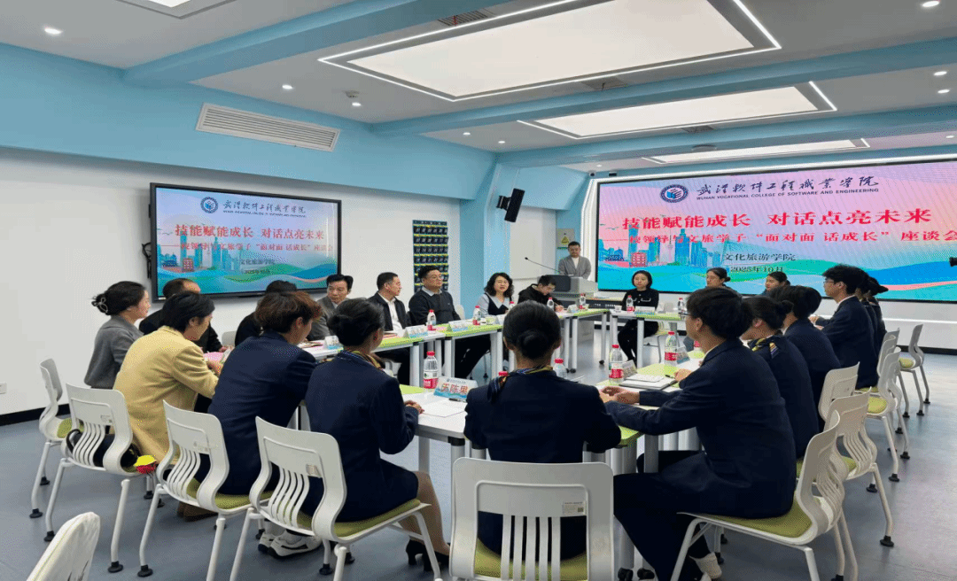 10月29日下午,校党委书记蒋兴鹏、校企合作单位代表走进文化旅游学院2230“一站式”学生社区,与该学院学生代表聚焦技能提升,共话发展路径。不少企业代表看到学生们自信展示和大方谈吐,当场对学子喊话,希望学生们毕业后到自己的企业去。