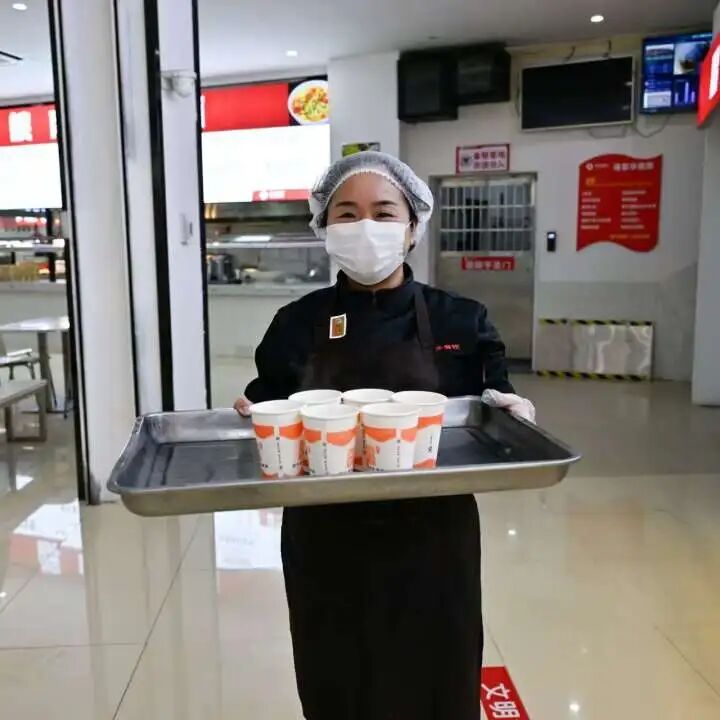 同学们有序排队领取这份冬日惊喜的同时不忘给食堂点赞。