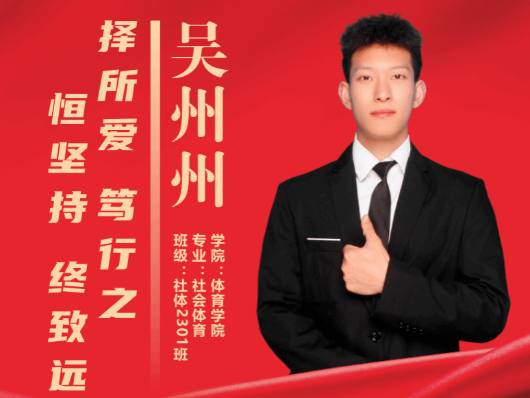他深耕体育专业赛道,以综合排名第一的硬核实力筑牢学业根基,收获国家级奖项1项、省级荣誉5项、校级表彰10余项,赛场上挥洒汗水竞风采,赛场下勤勉笃行攀高峰。作为学生骨干,他履职尽责、率先垂范,获评优秀学生干部;他心怀公益热忱,用行动传递温暖,荣膺优秀志愿者称号。文武兼修、德技并蓄,他用拼搏与坚守诠释新时代体育学子的奋进姿态!