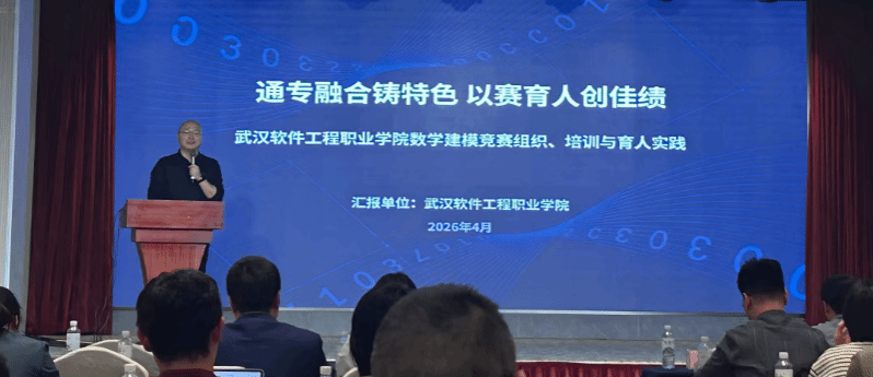 (通讯员 陈傲西)近日,2026年湘鄂大学生数学建模竞赛研讨会在湖北十堰市召开。我校通识学院杨戟老师受邀作专题报告,分享高职数学建模育人经验。本次研讨会由全国大学生数学建模竞赛湖南赛区组委会、湖北赛区组委会联合主办,湖北省工业与应用数学学会承办、湖北汽车工业学院协办,吸引湘鄂两省百余所高校的数学建模负责人、指导教练及赛事管理人员参会交流。