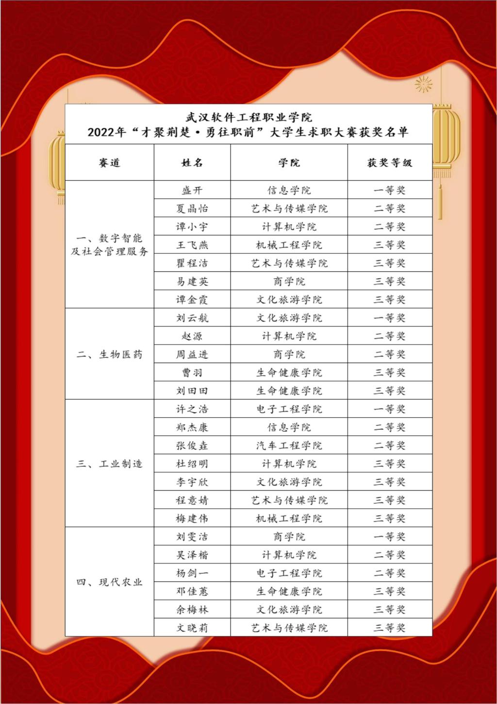 (通讯员:汪莉)10月7日,我校2022年“才聚荆楚·勇往职前”大学生求职大赛在学术楼一号报告厅成功举办。25名选手激情自信的自我展示和沉稳机智的舞台表现赢得了现场观众的阵阵掌声。信息学院盛开、文化旅游学院刘云航、电子工程学院许之浩、商学院刘雯洁分获四个赛道一等奖。