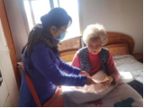 机关党总支书记刘红带队到养老院看望患有阿尔茨海默病的李晓华老师。当护工将李老师推到会客室时,李老师竟然一眼就认出了大家,还喊出了每个人的名字,这让在场的同志十分惊喜。在交谈中,李老师不断念叨大家的名字,流露出开心的神情,还把手中的橘子分给同志们吃。刘红代表组织将慰问金交给李老师,还亲切的询问她的生活和治疗情况,叮嘱护工师傅一定要认真照顾好她。