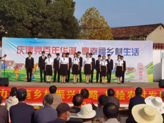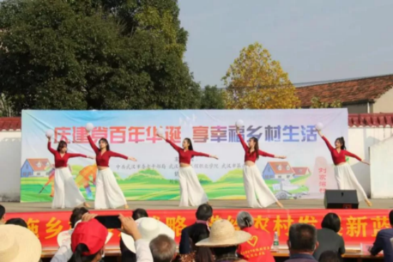 11月2日,在武汉市新洲区凤凰镇刘家湾村驻村工作队大力组织协调下,我校与市委老干部局联合武汉市第六医院,在对口帮扶的刘家湾村开展“庆建党百年华诞·享幸福乡村生活”为主题的送文艺、送医、送药下乡活动。