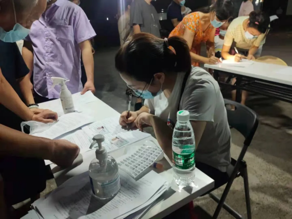 核酸检测忙,党员来帮忙。还有叶蓉、刘扬、王九程、杨树清、卢涛、陈红、李霞、申郑、张萍、喻萍芳、文峥嵘等老师,“抢”着下沉社区做核酸检测志愿者。聚是一团火,散是满天星。人文学院党员教师们第一时间积极响应,努力践行志愿服务精神,与社区联动同频共振,与时间赛跑,全力协助社区做好全员核酸检测工作,齐心协力守护我们的城市。
