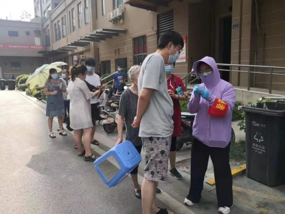 “紧急通知:今天全市各社区对居民进行核酸检测,请学院党员上午9点到各自居住地社区报到,任务是协助社区核酸检测工作。”8月4日,人文学院党员之家群收到这样一条消息。群里的老师们第一时间变身“红马甲”,活跃在基层社区集中采样点。通知居民、分流人群、摸底排查、协助社区登记、体温检测、消毒、维持秩序等,她们战高温、抢时间,筑起抗击疫情的坚实防线。