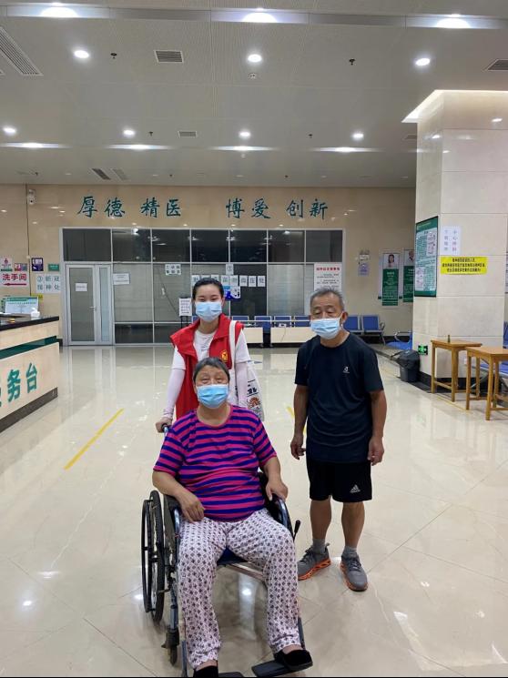 金琼老师下沉到五里墩街道五麒里社区,负责上门宣传核酸检测时间、地点。当来到两位空巢老人的家中,她发现一位老人刚手术不久卧床休养,最近天热,两老没出门,不知道核酸检测事宜。而这时已是晚上7点多,离核酸检测截止时间不多。她担心两老自行前去赶不上检测,便推着老人坐的轮椅迅速前行,三人赶到时检测点已撤离。考虑到两老来出门一趟很不容易,她又赶忙和社区、卫生院进行沟通,商定二老在卫生院进行核酸检测。整个过程一波多折,但总算协助二老完成了检测。检测结束后,她又将二老送回家中,二老连声感谢。