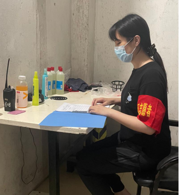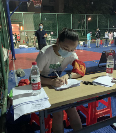 李彦汝老师白天顶着炎炎烈日进行体温检测、秩序维护、安全引导;晚上,又询问信息、登记表格、沟通协商。有的小区没有配置电脑,采集信息只能手写,她就不厌其烦一笔一画地认真填写表格,工作人员让她休息一会儿,她都婉言谢绝,继续在自己的岗位上坚守,直至深夜。