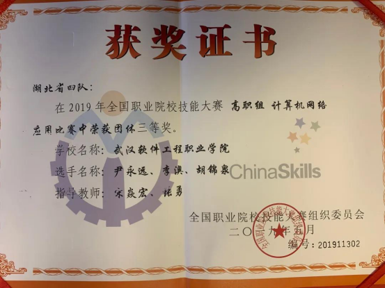 2019全国职业院校技能大赛计算机网络技术专业获团体三等奖