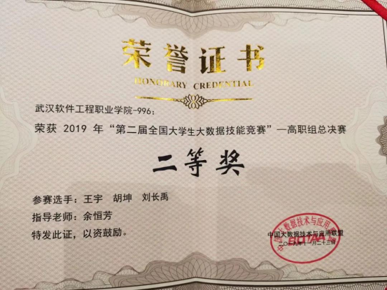 “第二届全国大学生大数据技能竞赛”高职组总决赛二等奖