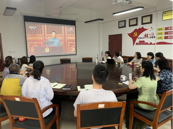 学院集中观看了庆祝中国共产党成立100周年大会直播,内心感慨万千,激动不已。建党百年,中国共产党领导中国人民,把一个积贫积弱的国家,建设成蓬勃发展的强国,试问全世界有哪一个政党能做到?看着鲜艳的五星红旗,庄严神圣的党徽,满满的民族自豪感,油然而生。