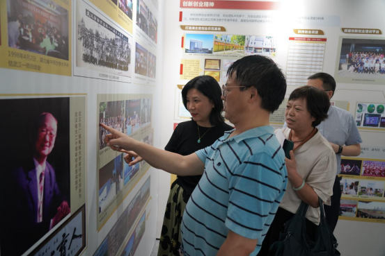 (通讯员 吴骊)6月30日上午,“学党史 知校情 跟党走”学校发展成果展在创新创业大楼一楼正式开展。校领导,各学院、各部门负责人及学生代表作为第一批参观者出席开展仪式。