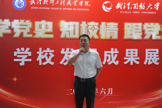 校长刘前信在开展仪式上致辞。他回顾了我校七十年建设发展的奋斗历程,并指出,历史是文化和精神的永恒依托,是薪火相传的不竭动力。今天的学校站在一个新的发展起点上,我们要传递好历史的接力棒,紧密团结在以习近平同志为核心的党中央周围,自觉服务大局,发挥自身优势,形成办学特色。学校将持续紧密对接武汉经济社会发展需求和未来产业发展方向,全面提升人才培养质量和毕业生就业质量,不断增强科技创新和社会服务能力,大幅提高企业认可度和社会知名度,进一步提升师生幸福指数及干事创业的凝聚力、战斗力,努力把学校建成特色鲜明、国内一流、有国际影响力的高等职业院校和开放大学。
