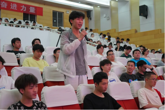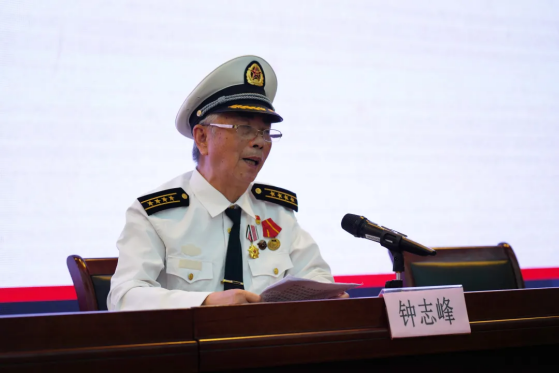 两名老兵结合自己的亲身经历,讲述了自己和战友们不负韶华,建功军营,永远跟党走的感人事迹。钟志峰老人是开国将军董洪国长子、援越抗美英雄董保华的战友,他曾和董保华一起奔赴援越抗美斗争最前线。1967年10月6日清晨,在美军轰炸机的残酷轰炸中,一颗子母弹在离董保华不到30公分的地方爆炸,弹片击穿钢盔后嵌入他的后脑勺,鲜血顿时染红了衣服。但为了不影响战斗,董保华强忍伤痛,以顽强的斗志,准确转动转轮,死死咬住敌机及时报出一串串数据,完成了测手的战斗任务。战斗结束后,帮班长包扎伤口的董保华才发现自己后脑勺流出的鲜血。文书和另一个战士把晕倒的董保华抬下阵地,准备送去野战医院时他醒了过来,挣扎着要下担架,并说:“我还能战斗,我不下阵地。”接着他还背诵毛主席语录:“下定决心、不怕牺牲、排除万难,去争取胜利!”他在医院昏迷了七天七夜,伤情稳定后才开颅取出弹片。1968年,董保华参加海军四好连队五好战士表彰大会,受到毛主席和党中央领导的接见。国庆节,他还作为海军英模代表登上了天安门观礼台。后来他考上医学院,成为了一名军医。老兵钟志峰用朴实生动的语言叙述着他们不畏牺牲的感人经历,这场身临其境的战争回忆,仿佛将师生带回到五十多年前那场炮火连天的战斗中。