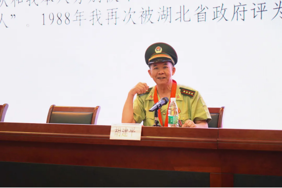 “万里长江活雷锋”、原武警湖北总队船艇大队队长胡建平同志回忆了他曾为来访武汉的毛主席等老一辈革命家和重要外宾驾船的经历。1985年8月,长江流域发生特大洪水,与此同时胡建平父亲病危,为了抢险救灾,直到父亲去世,他也没能回去看上一眼。那年他与战友一起抢救了1400多名受灾群众。这些年来,胡建平与战友们抢救落水者760名,救助遇险群众2800余人,抢救遇险船只268艘次,打捞漂浮物12000余件,为国家挽回5000多万元的经济损失。王秦兰是被胡建平救起的轻生者之一,胡老救完人还把她领到家里,耐心开导启发。听说王秦兰患了头痛病,又把她接到武汉,送她去医院治疗。后来身体好转的王秦兰专心钻研技术,在有400多名职工的刺绣厂里,夺取了绣花第一名的桂冠。胡建平先后让30多位像王秦兰这样悲观厌世的人重新扬起了生活的风帆。武昌区工读学校恢复开办以后,胡建平决定让船队和学校开展共建活动,协助对轻微犯罪青少年进行教育改造,至今该校共有480多名学生毕业,其中不少入团、入党、参军或上了大学。胡建平奋不顾身救群众、真心实意帮弱者、尽心竭力育少年的事迹感染了师生代表,现场响起热烈掌声。
