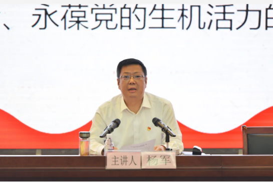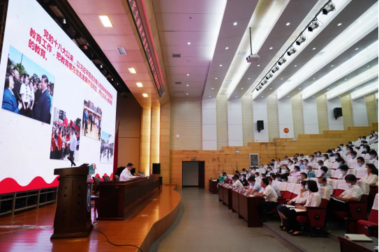 副市长杨军以《学习百年党史 凝聚奋进力量 办人民满意的教育》为题,为全校科级以上干部带来了一堂精彩的党课。