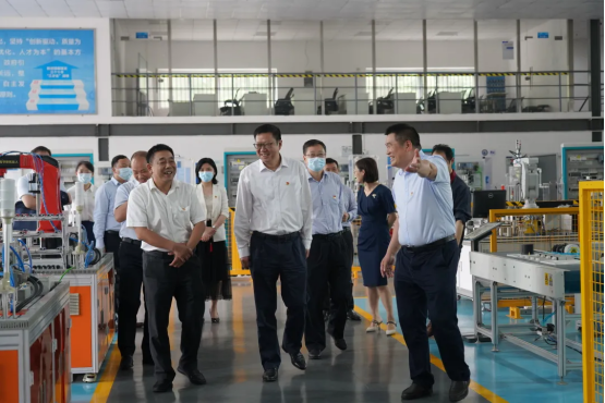 副市长杨军一行还实地考察了武软客厅党史展览、武汉市智能制造公共实训平台、马克思主义学院等教育教学场所,和师生亲切交流,充分肯定我校在党史学习教育、专业建设、思想政治工作等方面所做的努力和取得的成效。