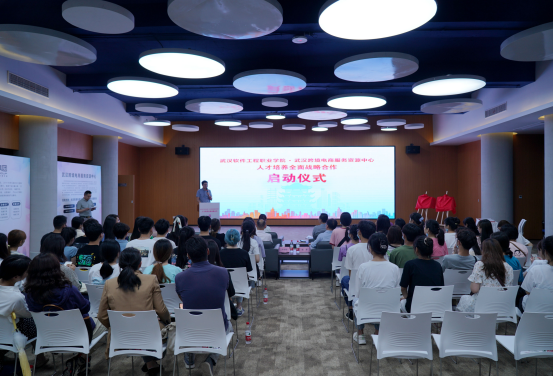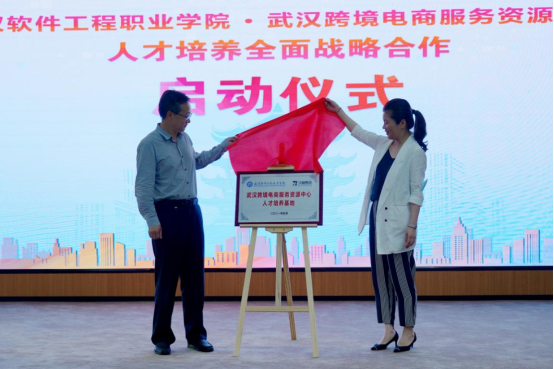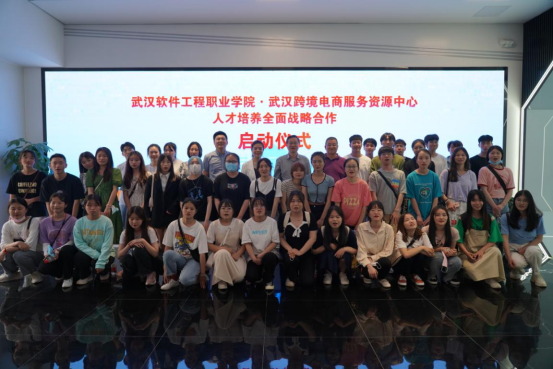 5月14日下午,武汉软件工程职业学院与武汉跨境电商服务资源中心启动武汉地区跨境电商人才培养的全面战略合作,我校与汉睿集团“跨境电商产教融合实践教学基地”及“武汉跨境电商服务资源中心人才培养基地”正式揭牌成立。硚口区副区长张智,硚口区人大常委会副主任、汉正街道党工委书记胡亚飞及我校商学院相关负责人、2020级商务英语专业“跨境电商”专创融合班师生参加仪式。