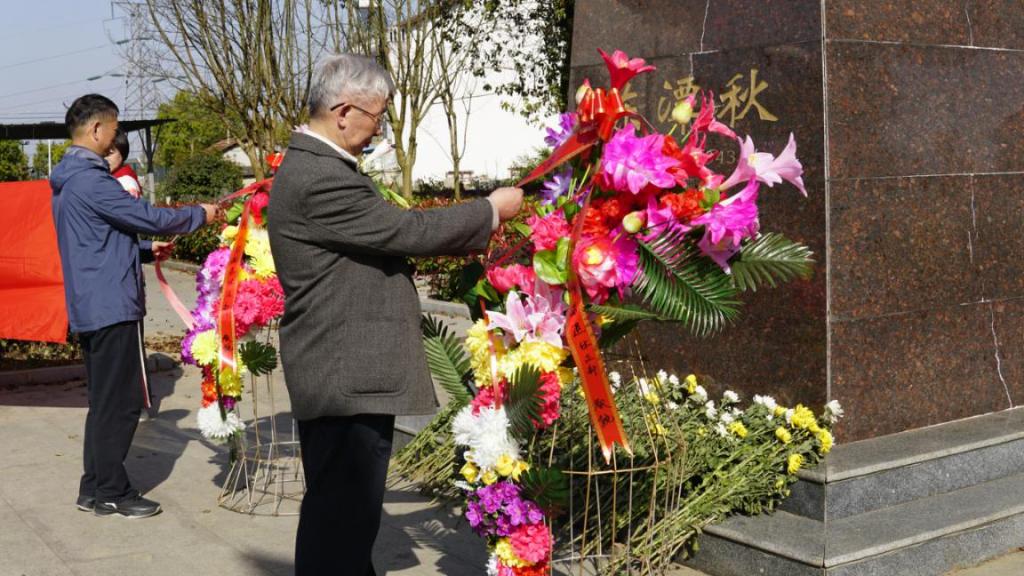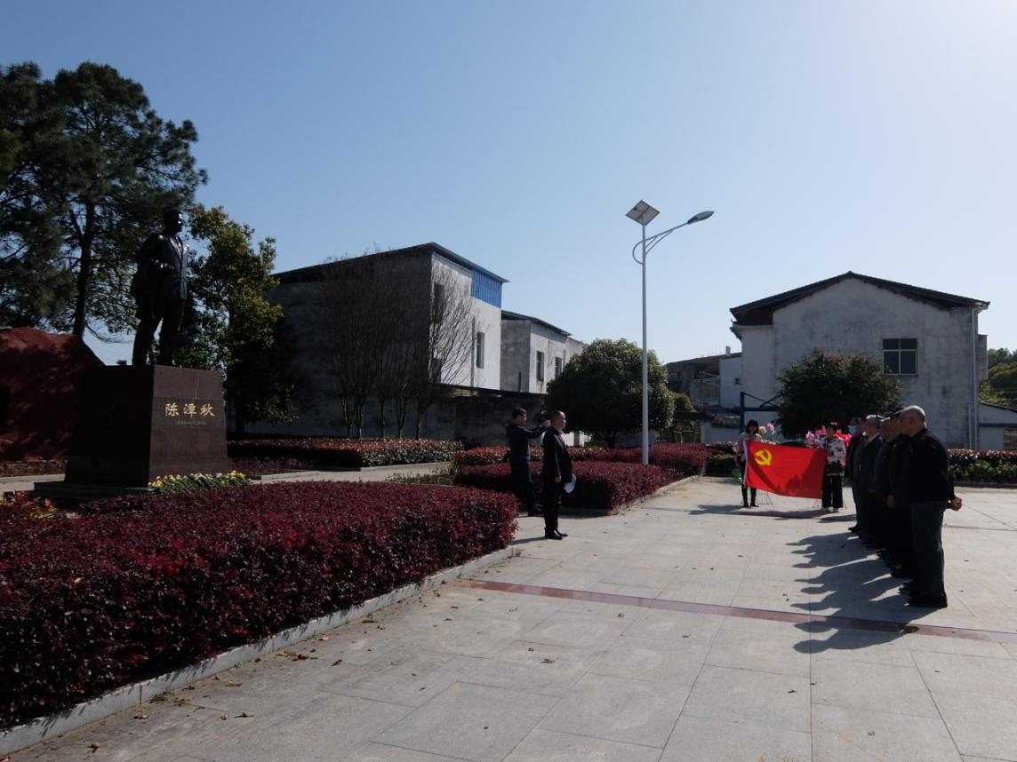25日,一行人前往陈潭秋故居纪念馆、林育英故居等地,瞻仰革命先辈,接受红色洗礼。下午3时许,老干部列队走上陈谭秋故居纪念馆前的铜像广场,庄严奏唱国歌,向陈潭秋烈士敬献花篮并默哀。在鲜红的党旗下,老同志们举起右手重温入党誓词,不忘初心、牢记使命,永葆共产党员本色。