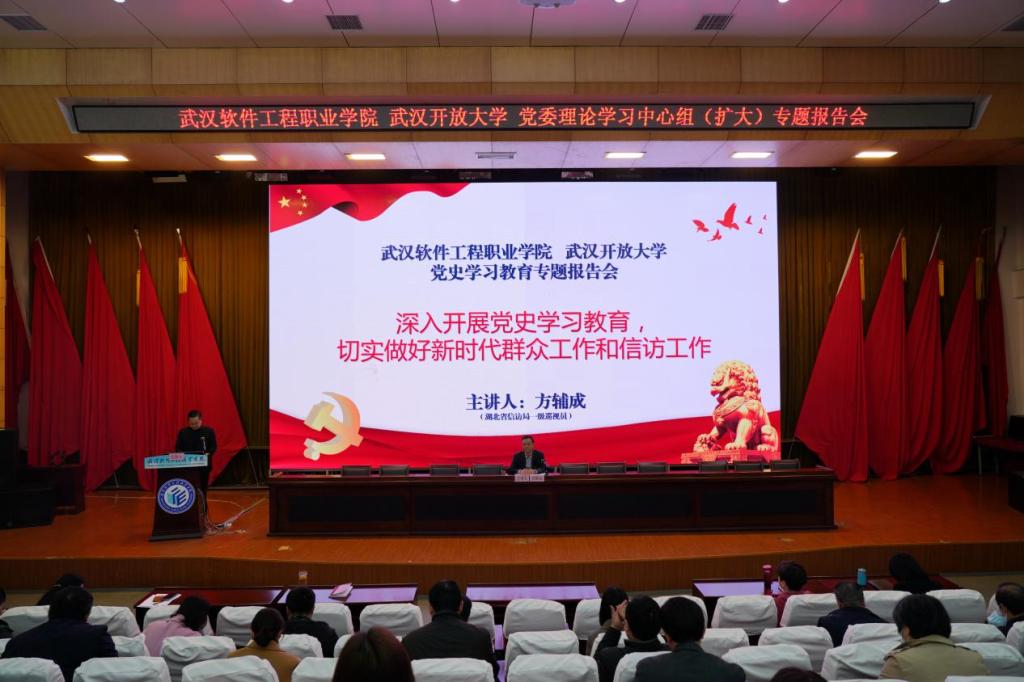 (通讯员 赵珊 含玉)为深入开展党史学习教育,进一步加强党员干部理论武装,3月24日下午,校党委理论学习中心组(扩大)专题报告会在学术楼一号报告厅举行,湖北省信访局一级巡视员方辅成为全校中层及以上干部作党史学习教育专题报告。校长刘前信主持报告会。