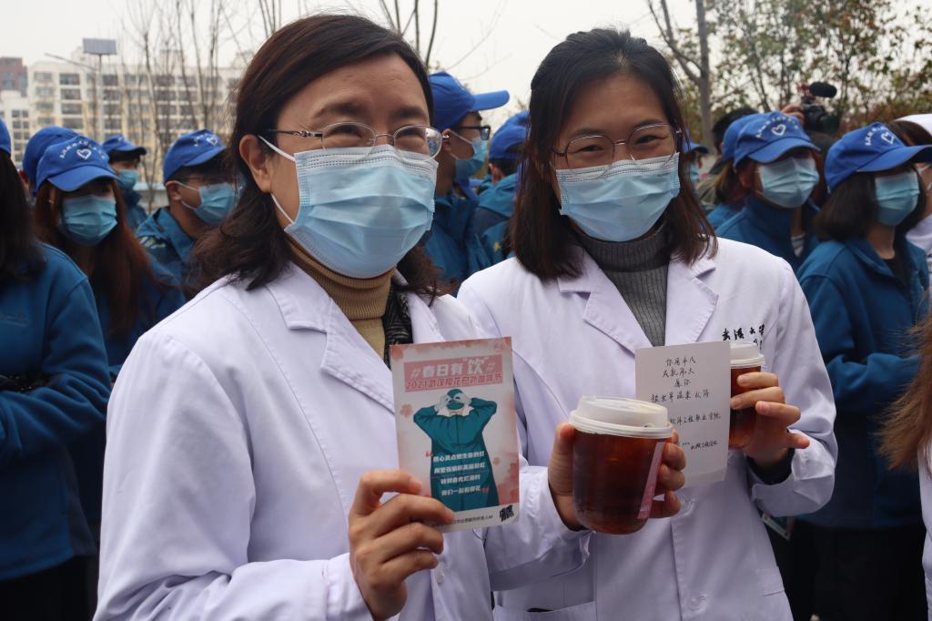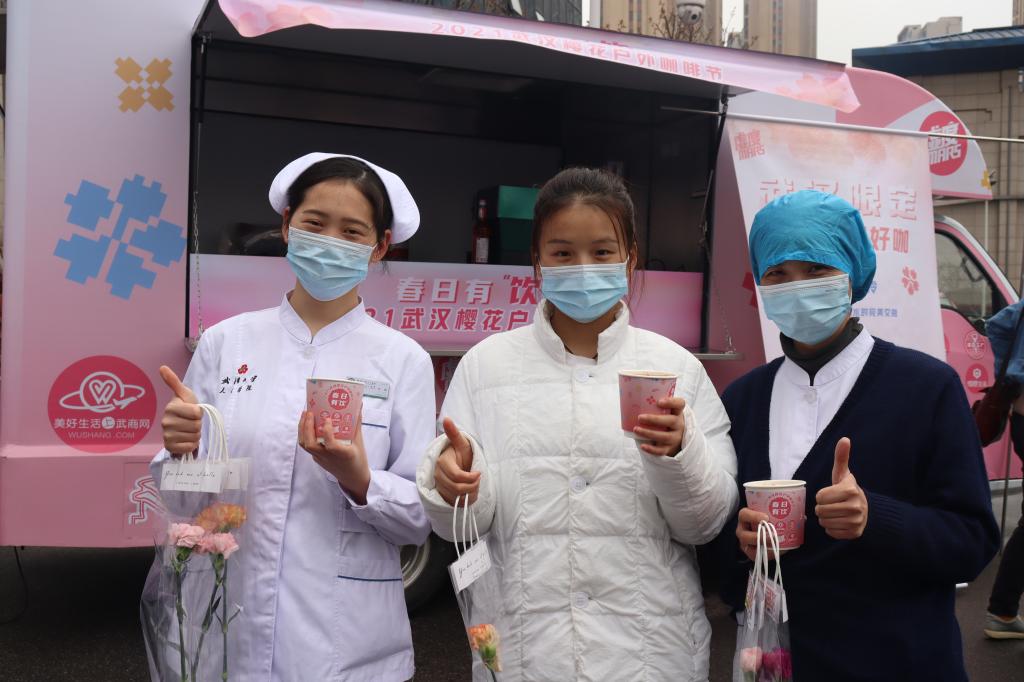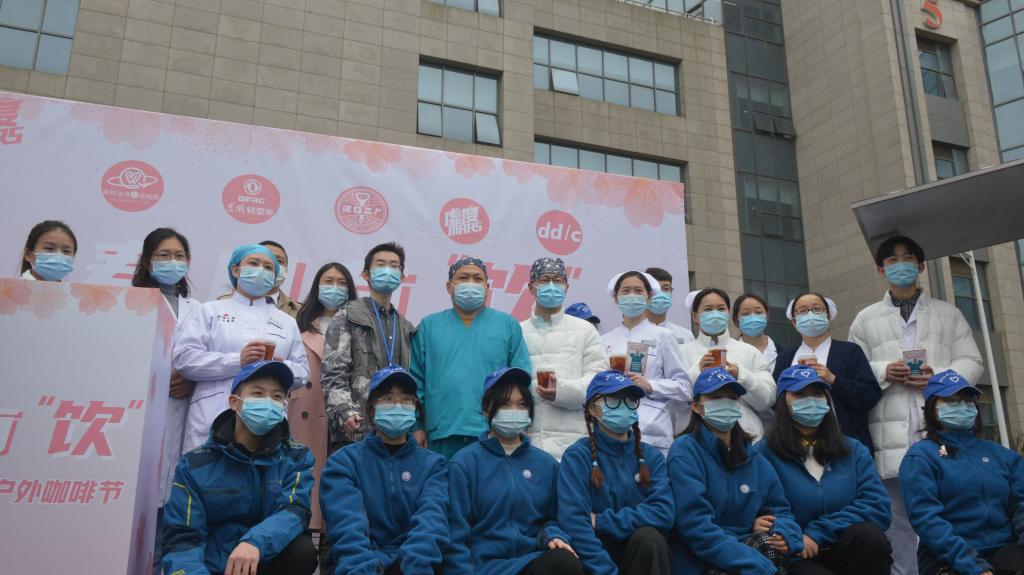 3月19日上午十点,我校100名志愿者来到武汉大学人民医院,参加“武汉樱花户外咖啡节”活动,为白衣天使们送上春日暖心咖啡,传递对医护人员的爱与感激。