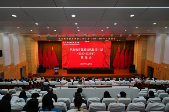(通讯员:何一蘅)1月8日,我校在学术楼1号报告厅召开职业教育提质培优行动计划(2020-2023年)推进会。校领导、全体中层干部及各学院教务科长、教研室主任、实训室主任、学生科长、团总支书记参加。