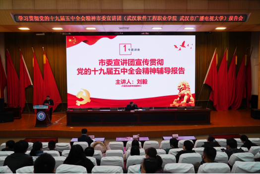 12月4日,学习贯彻党的十九届五中全会精神市委宣讲团武汉软件工程职业学院(武汉市广播电视大学)报告会顺利举办,市委宣讲团成员、市委统战部常务副部长刘毅作宣讲报告。