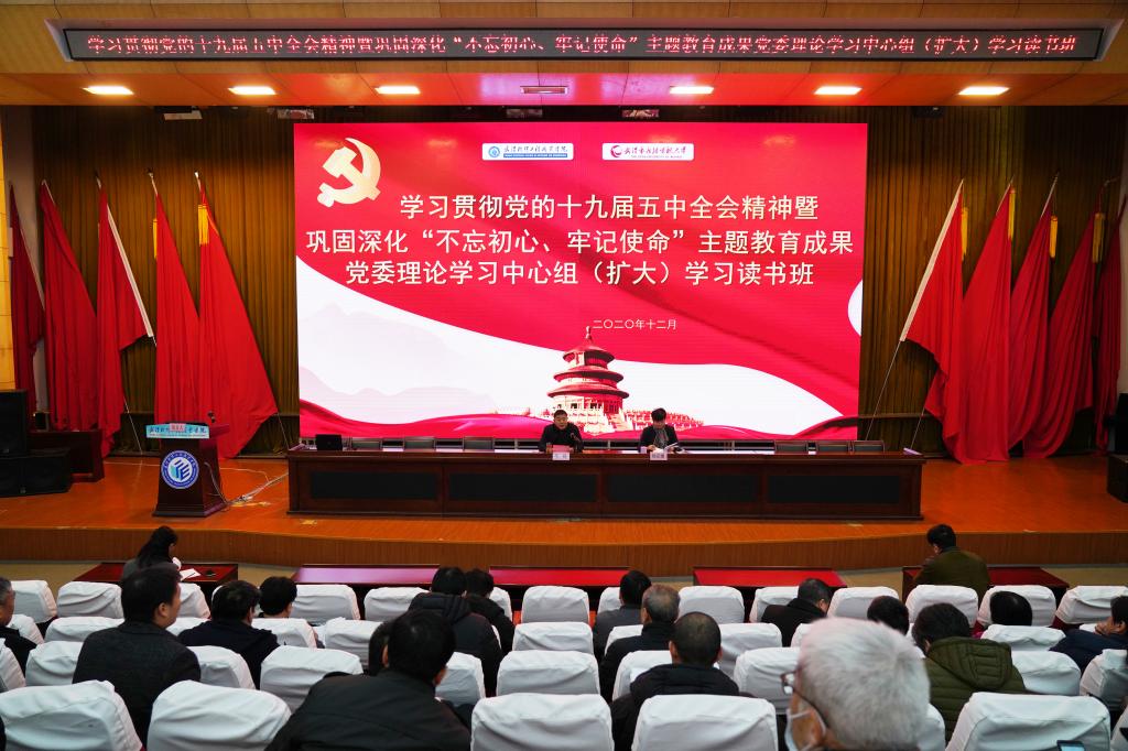(通讯员 周思思)12月4日下午,学习贯彻十九届五中全会精神暨巩固深化"不忘初心、牢记使命"主题教育成果党委理论学习中心组(扩大)学习读书班圆满结束。本次读书班通过专题讲座、集体自学、交流研讨等多种形式系统、深入地开展,校领导,全校科级以上干部、马克思主义学院教师和辅导员参加学习。