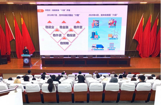 刘校长通过深入浅出的讲解,引导学生用全面、辩证、长远的眼光看待当前经济形势,充分认识到疫情对我国经济的冲击是短暂的、总体上是可控的,中国经济稳中向好、长期向好的基本面没有改变,潜力足、韧性强、回旋空间大、政策工具多的基本特点没有改变;让大家深刻认识到,危机中孕育着新机,只要我们扎实做好“六稳”工作,全面落实“六保”任务,在危机中育新机、于变局中开新局,不断培育壮大经济新增长点、增长极,中国经济的巨轮必能乘风破浪、行稳致远。