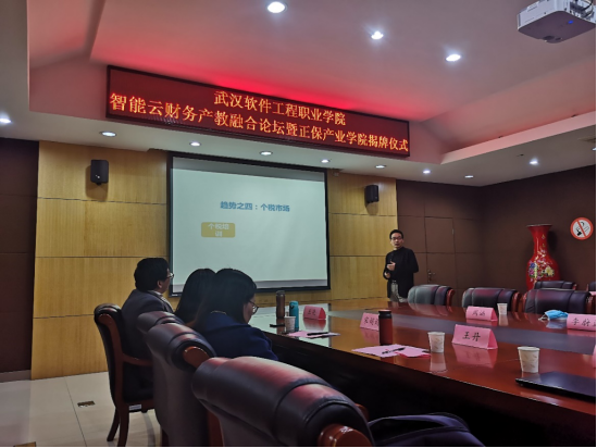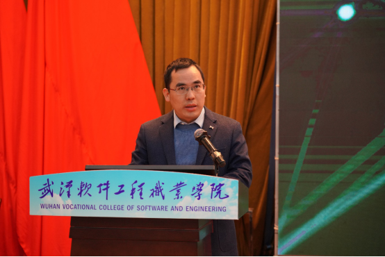 刘前信校长代表学校感谢与会的企业界朋友对学校的大力支持,热烈祝贺“正保产业学院”的成立,同时对产业学院的未来发展提出期望。他希望,“正保产业学院”坚持“育人为本、产业为要样、产教融合”的基本原则,在创新人才培养模式、提升专业建设质量、开发校企合作课程、打造实习实训基地、建设高水平教师队伍、搭建产学研服务平台、完善管理体制机制等方面继续取得更多更好的成绩,进一步打造出武软特色和优势。